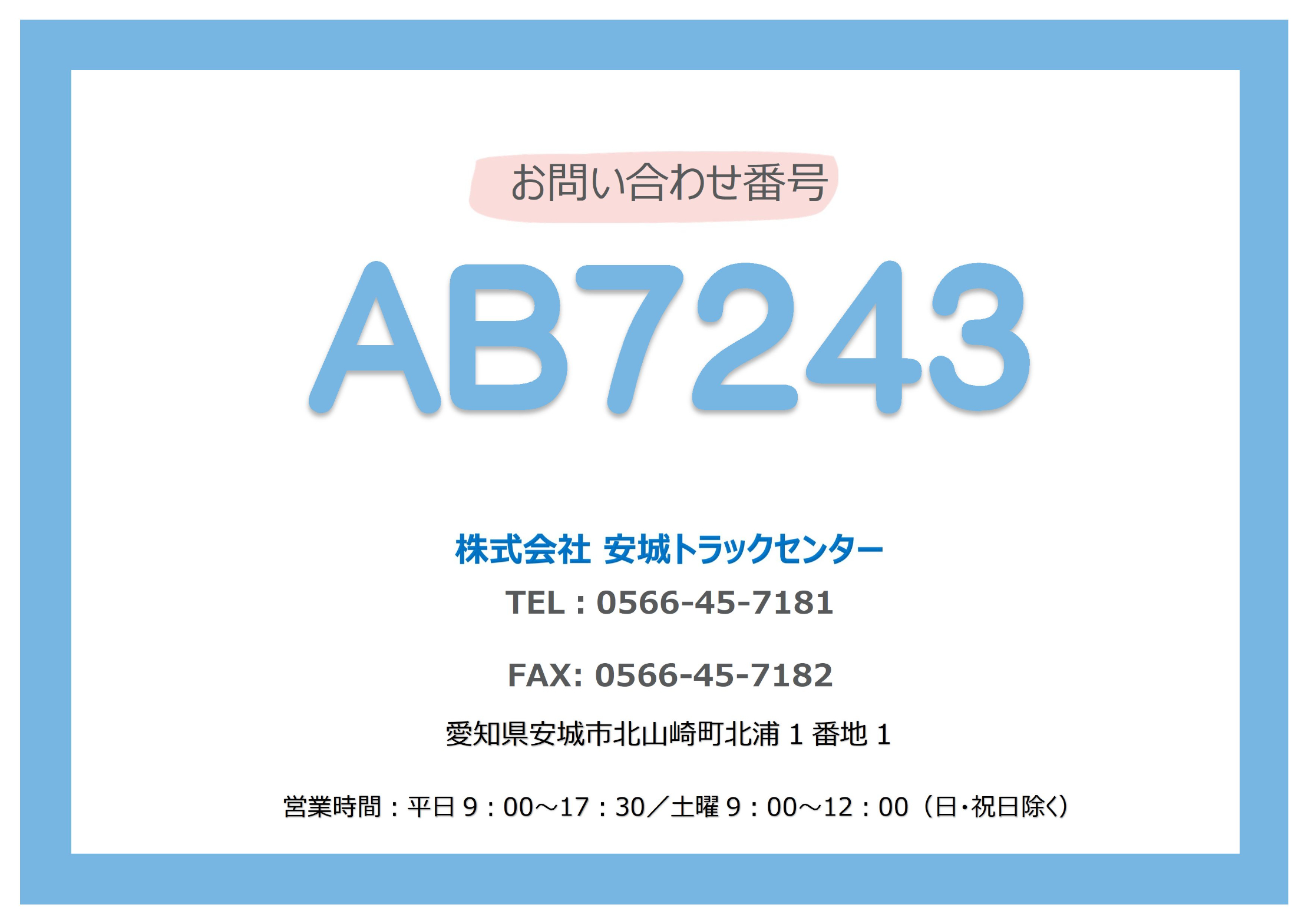 平日 9:00〜17:30 (日曜・祝日休み)