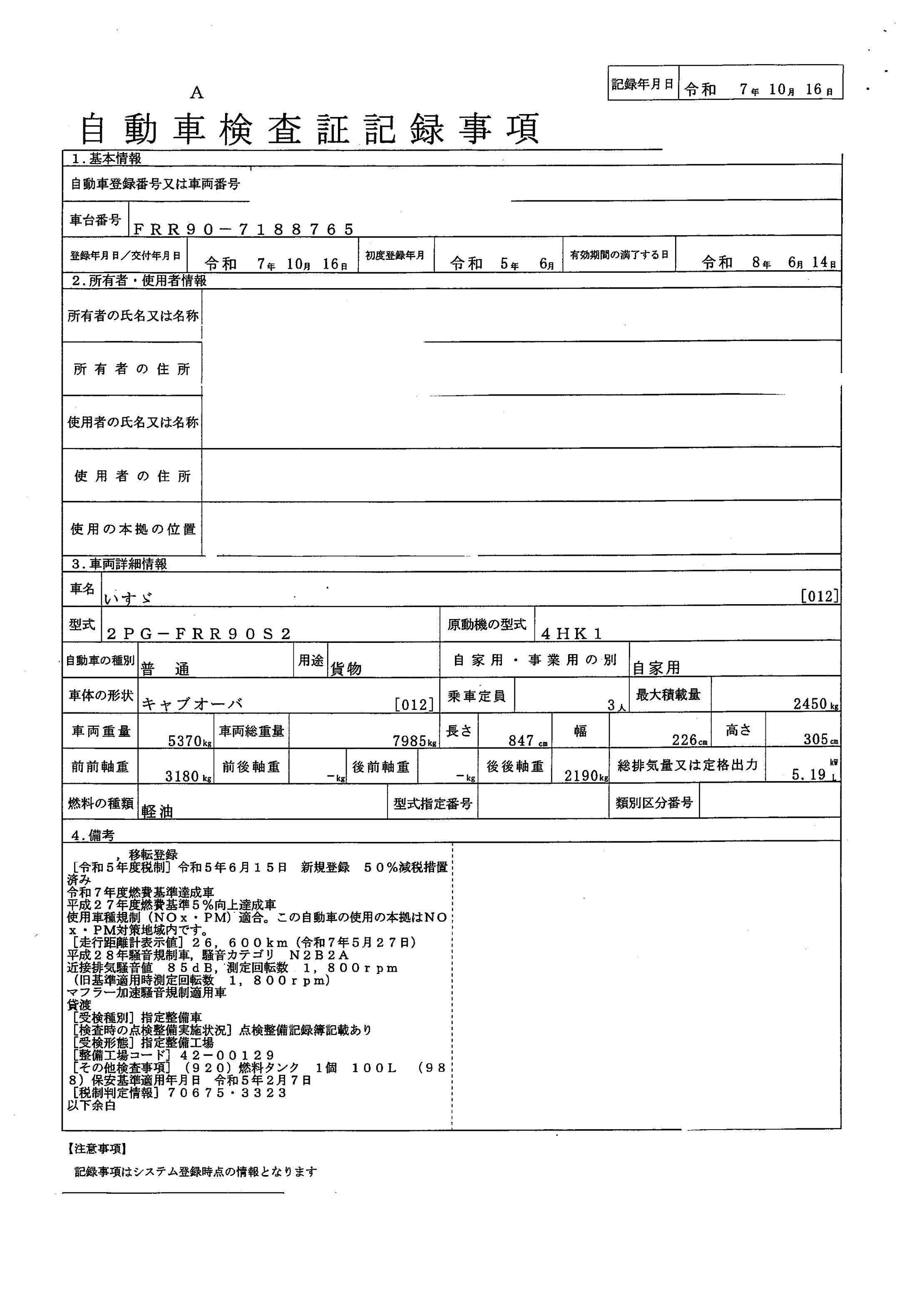 | 車検 | R8.6.14 |