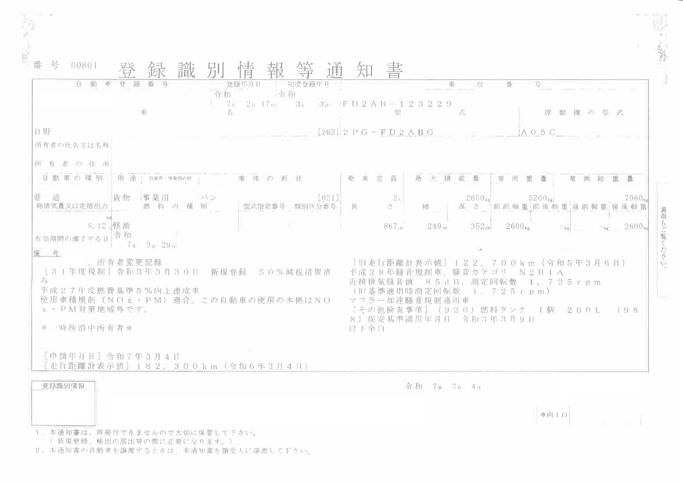 | 車検 | 抹消 |