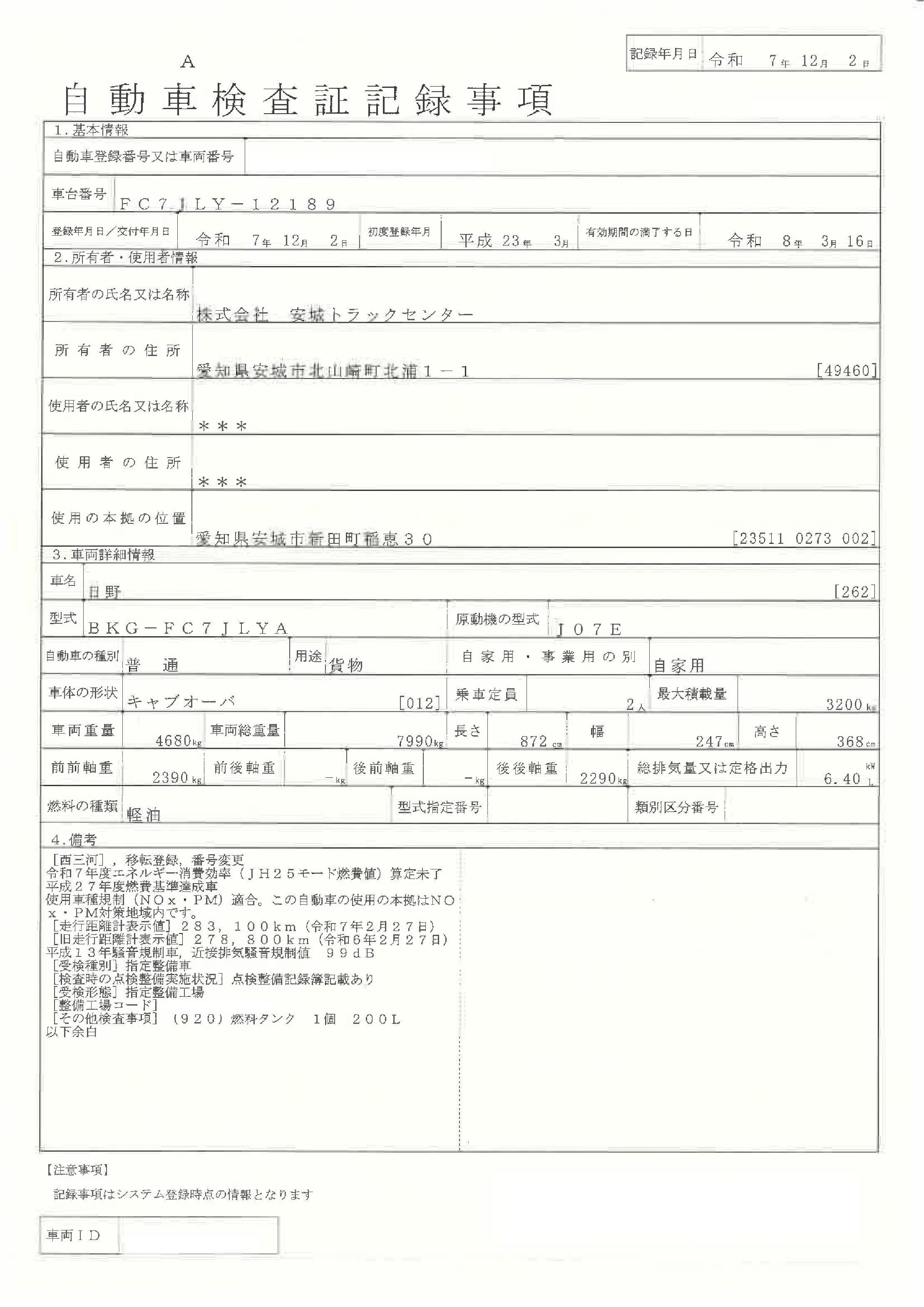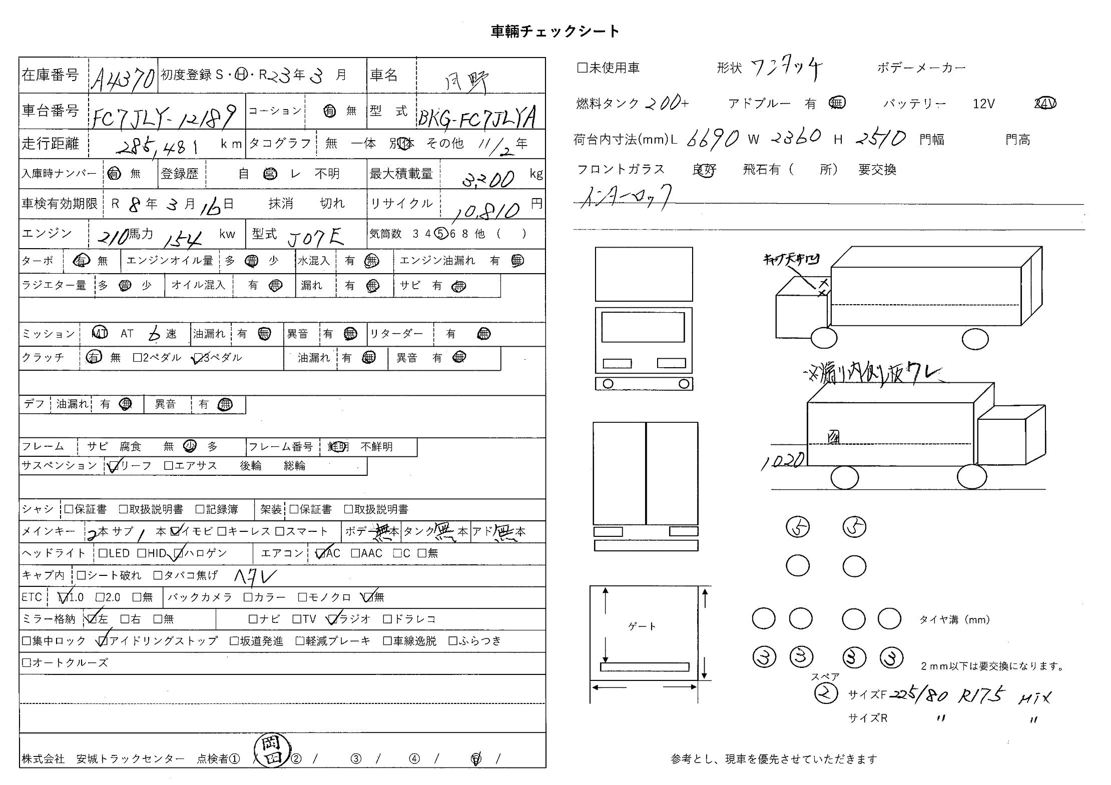 車検証・状態表