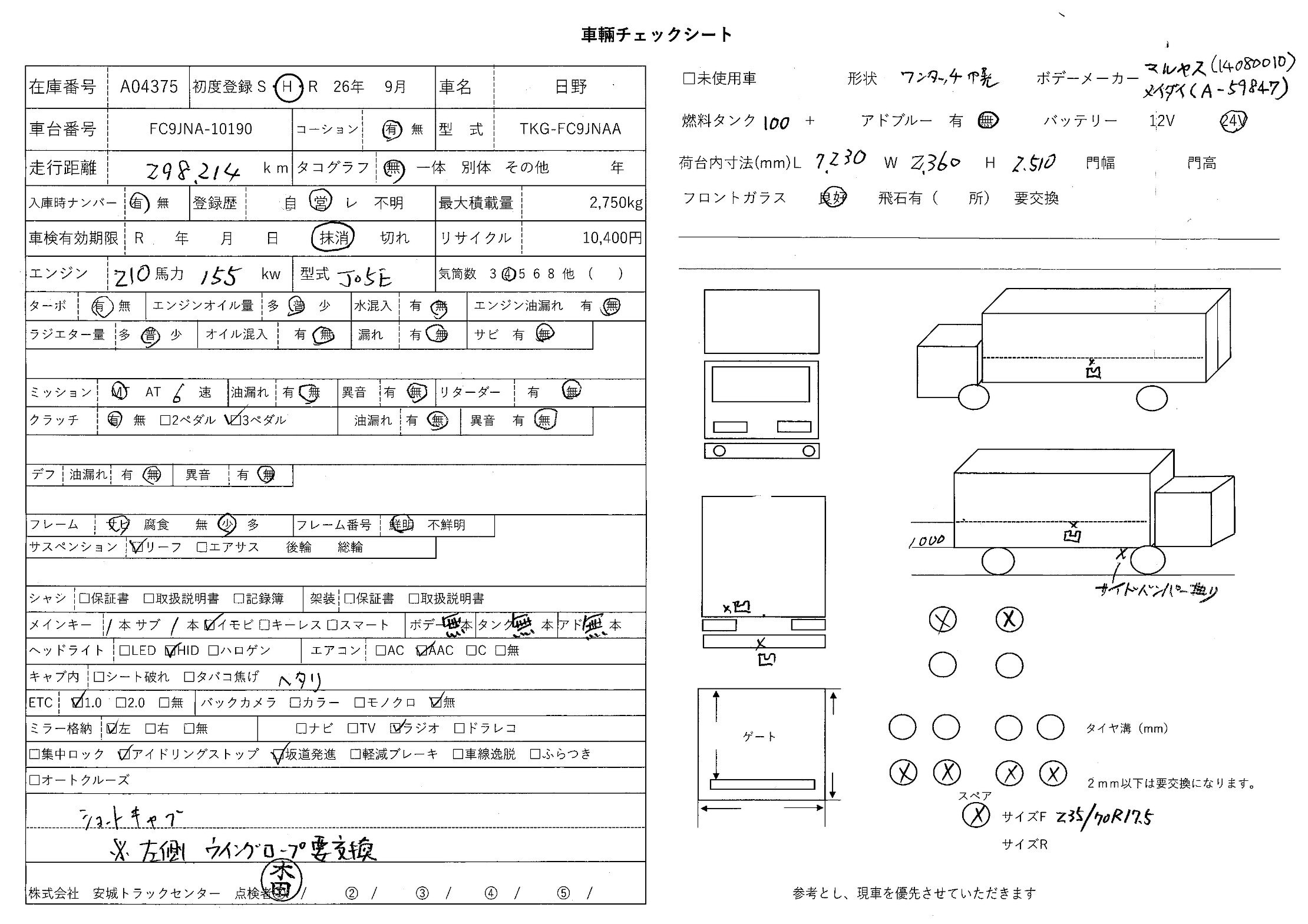 | 備考 | ショートキャブ 丸安 メイダイ |