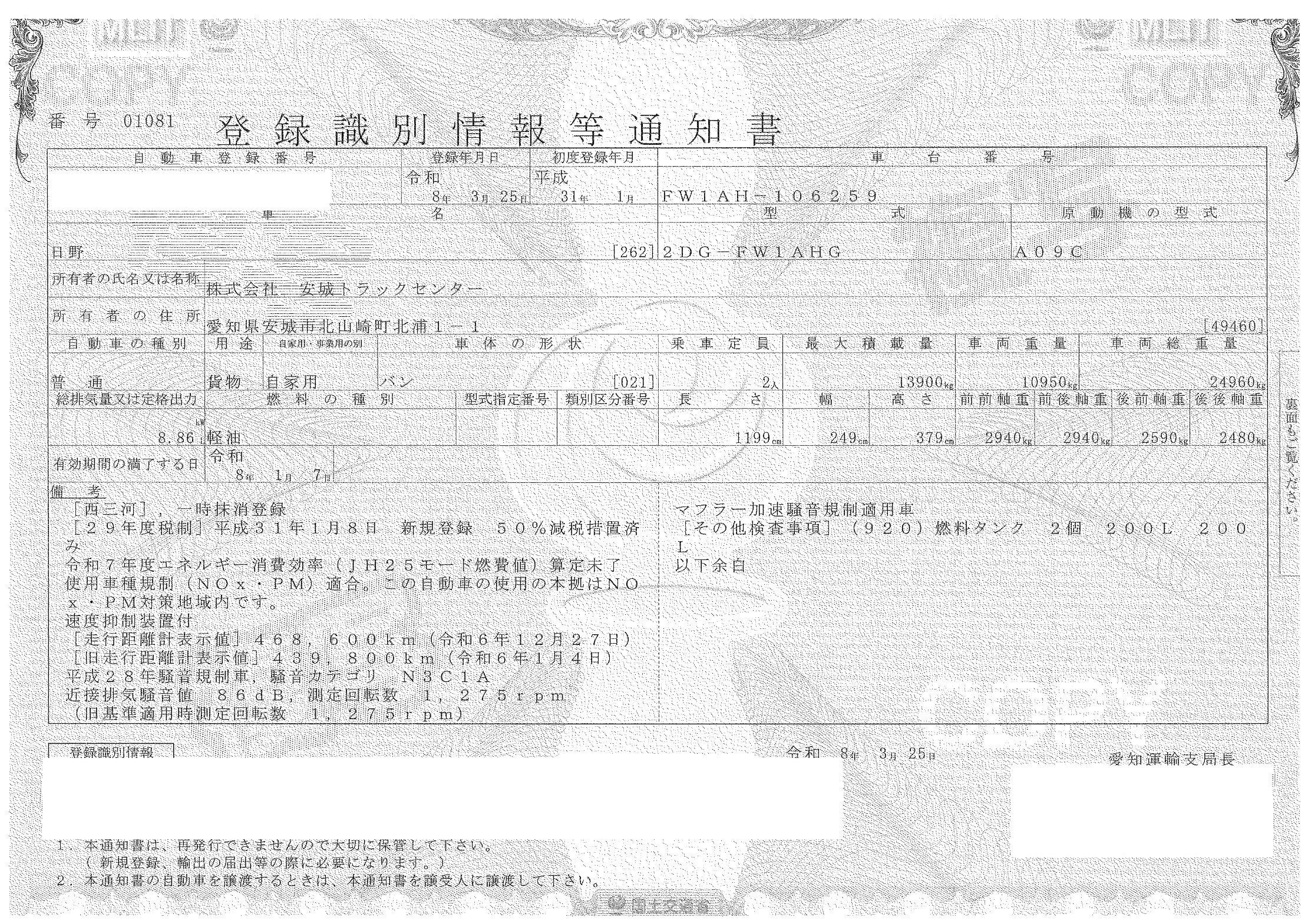 | 年式 | H31.1 |