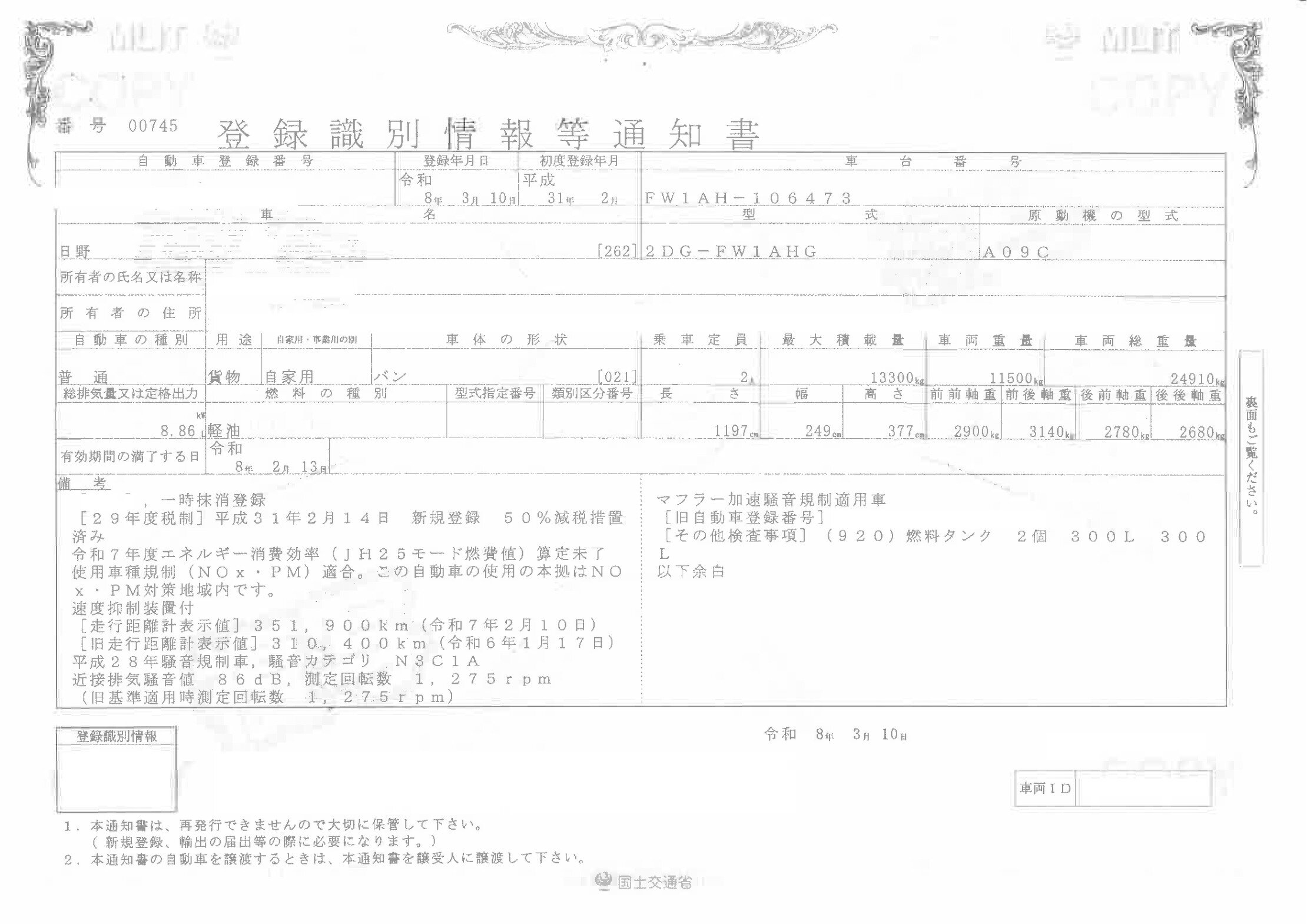 | 車検 | 抹消 |