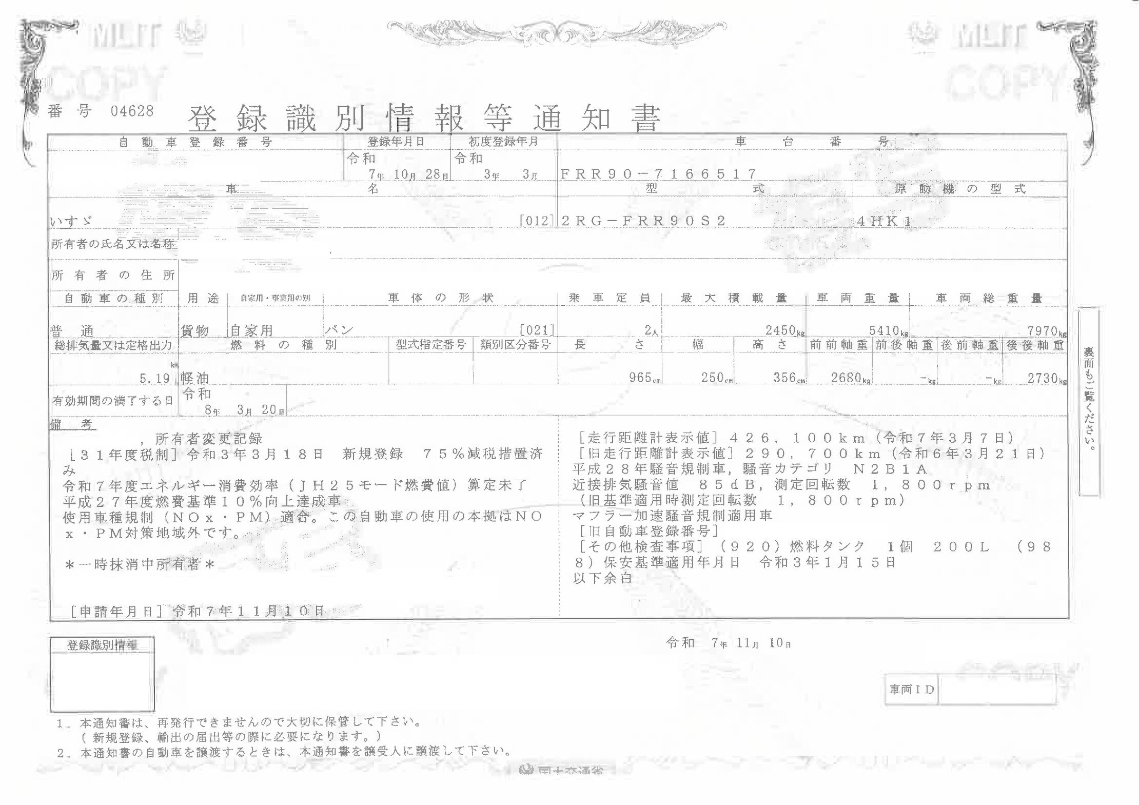 | 車検 | 抹消 |